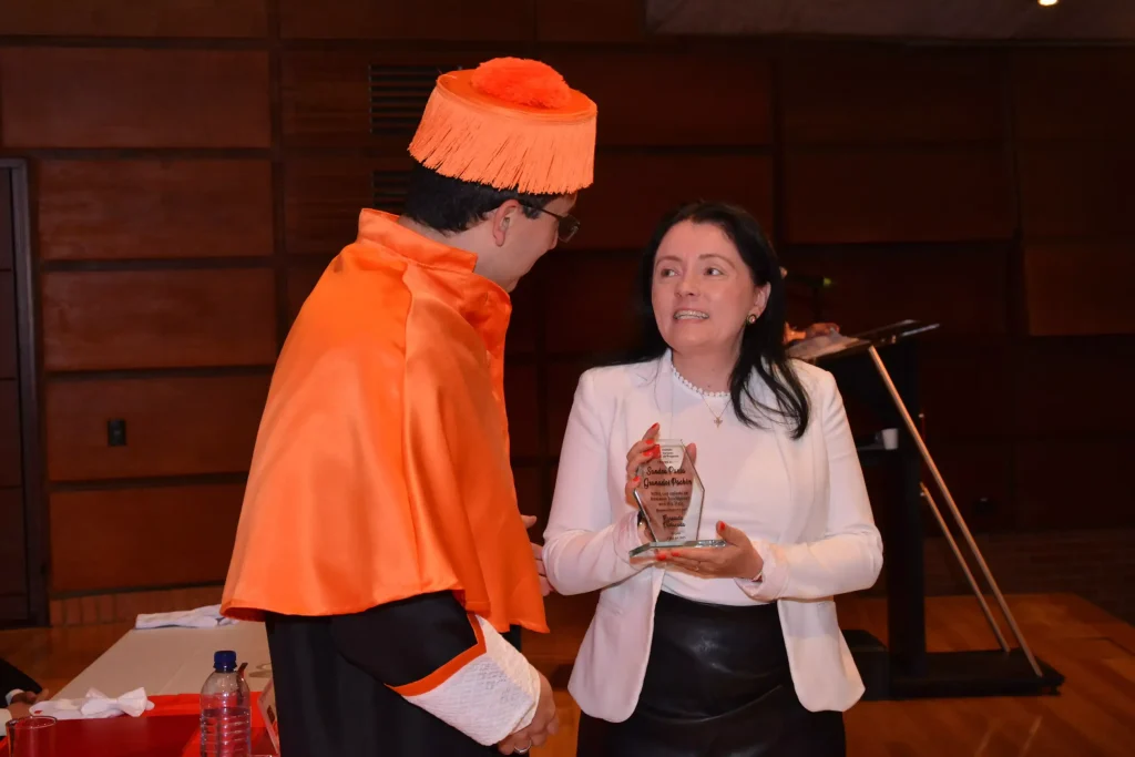 Por otra parte, Juan Carlos Olarte Moyano, Director de Innovación y Estandarización Académica del Grupo SUMMA, hizo entrega del reconocimiento de egresada destacada a Sandra Paola Granados Pachón.